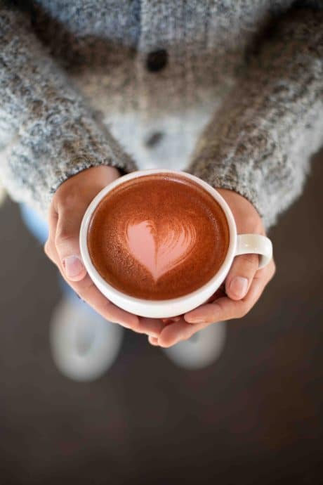 A dark chocolate, cinnamon and beetroot latte – available hot or iced.