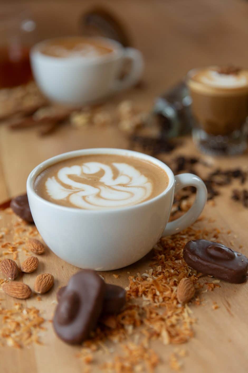 A mocha, almond, and toasted coconut latte reminiscent of a favorite candy from grandma’s snack stash