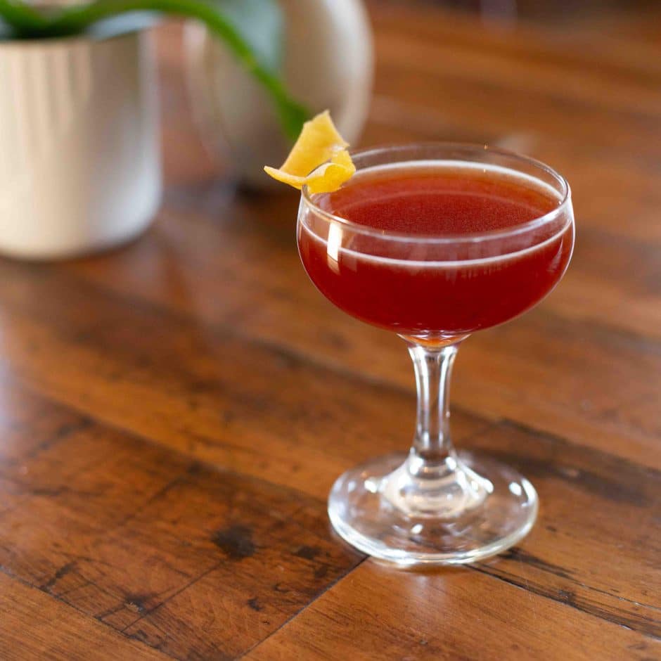Corsair Dark Rye + grenadine + Angostura + Luxardo Cherry