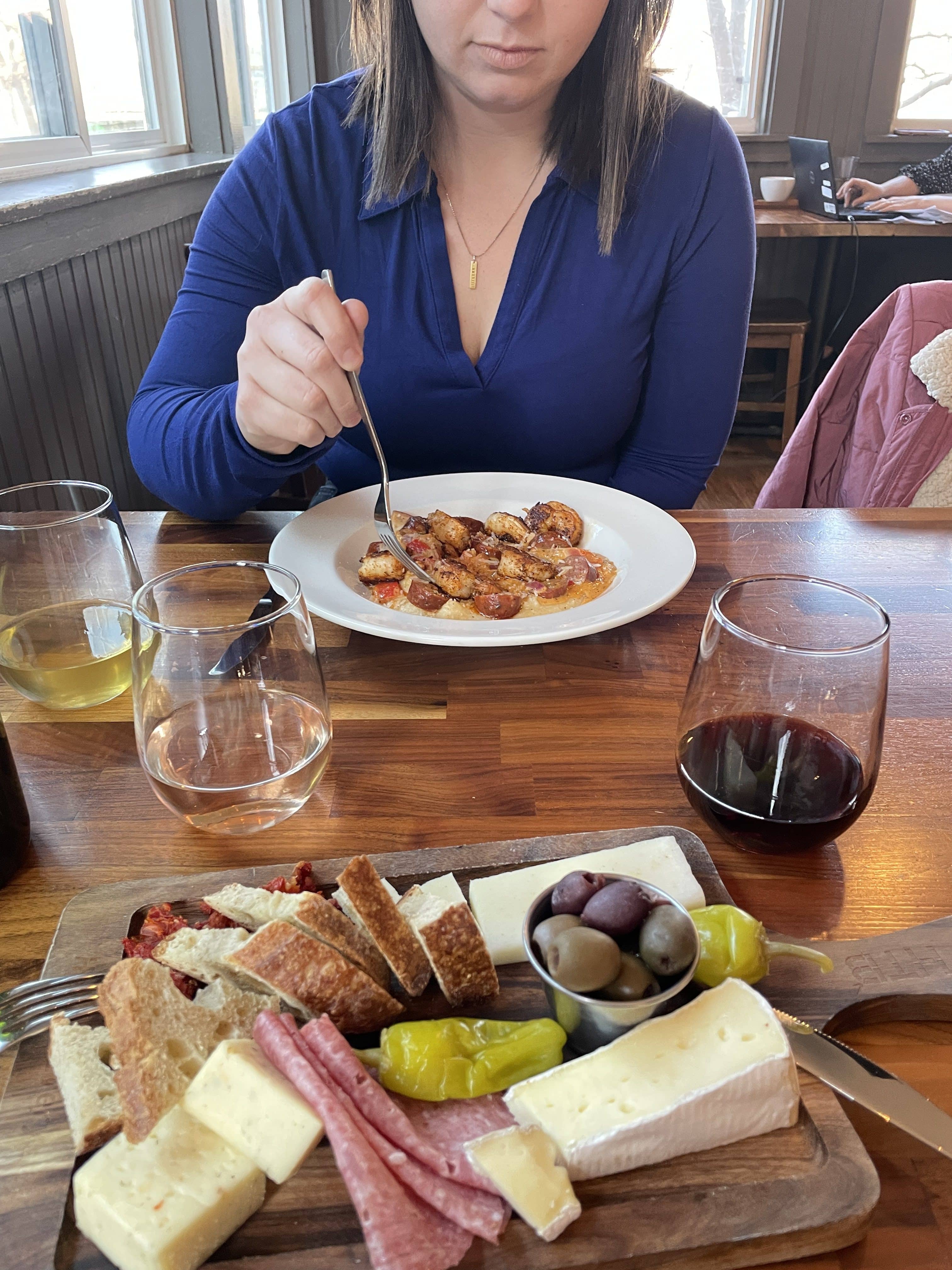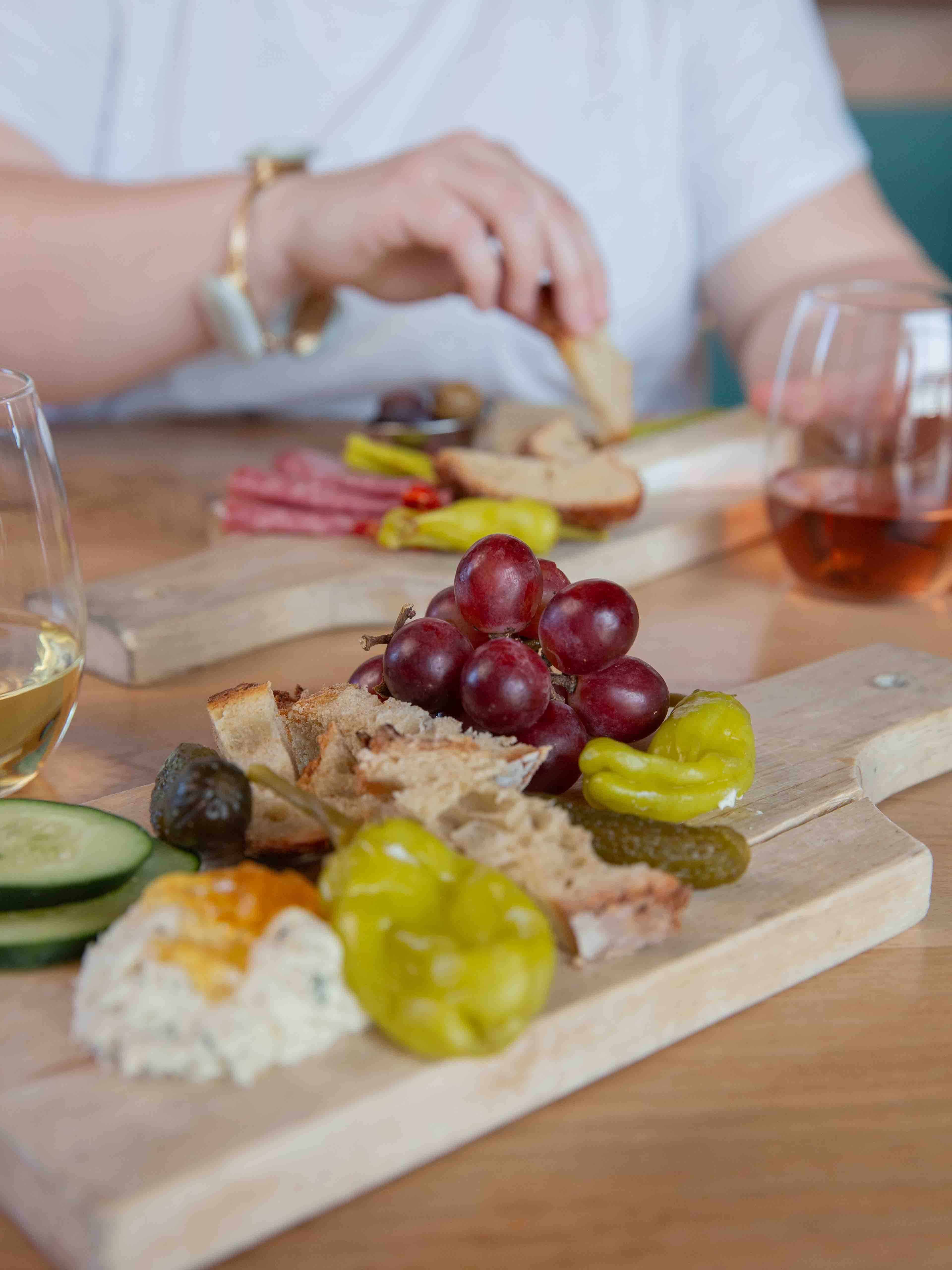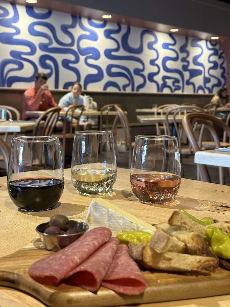 A flight of three wines and a personal charcuterie board for $15